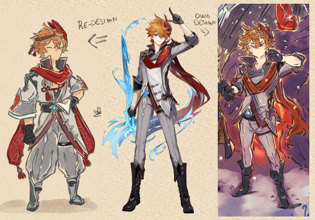 The above is an example of the same character re-designed(on the left) and drawn in their own design(on the right).